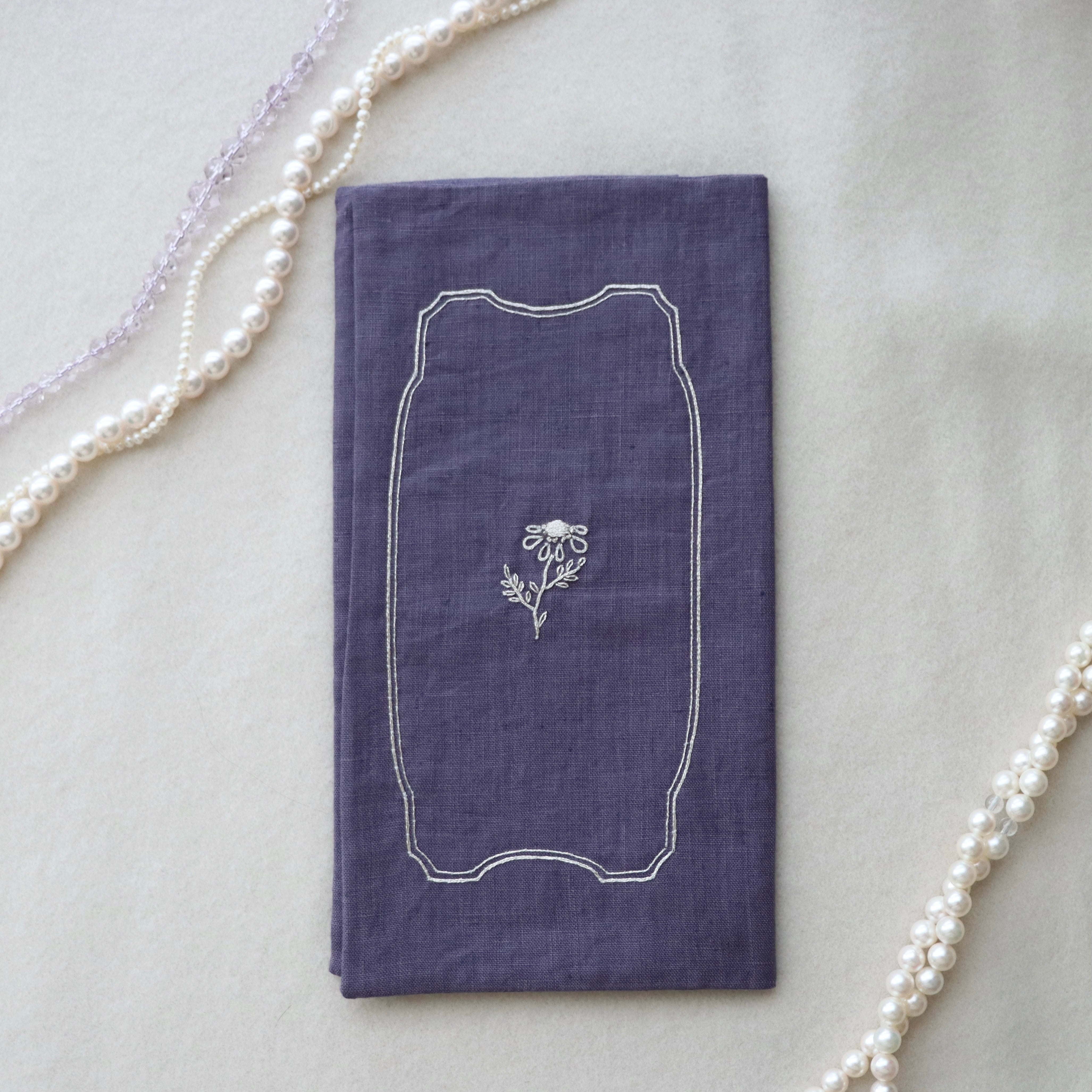 リネン生地に手刺繍を施したふくさです。 厚紙をはさんだタイプではありません。 接着芯を使用していますがやわらかい風合となっています。 和装にも洋装にも合わせやすいデザインで考えました。 生地はCHECK&STRIPEさんのオリジナルやさしいリネン/すみれグレーを使用しております。 ※天然素材ならではの糸のふし(ネップなど)が見られる場合があります。 布のご祝儀袋を入れられるように一般的なふくさよりも一回り大きなサイズとなっています。 慶弔両用としておりますが製品の特性上、地域などによってマナーが異なるアイテムとなります。 商品仕様についてご理解の上でお買い求めください。 完成後に一度洗濯、アイロンをしています。 ---------------------------------------------------- [商品詳細] *サイズ* 23×12.5cm *素材* 生地:リネン100% 刺繍糸:ビスコース72% メタリックポリエステル28% ---------------------------------------------------- [注意点] *他サイトでも同時に販売しております。 ご注文のタイミングによっては入れ違いで完売となる場合がございます。 誠に申し訳ございませんがご容赦ください。 *ディスプレイ等の仕様によっては実際の色と異なって見える場合があります。 *ハンドメイド作品ということをご理解いただいた上でご購入をお願いします。 発送日:毎週月曜日 ※金曜日までのご購入で翌月曜日に発送 (ご購入=ご入金確認) ※お急ぎの場合は購入前に一度ご相談ください。 ご希望に添えないこともございますのでご了承ください。 お問い合わせへのお返事:22時以降となることが多いです オーダー:承っておりません