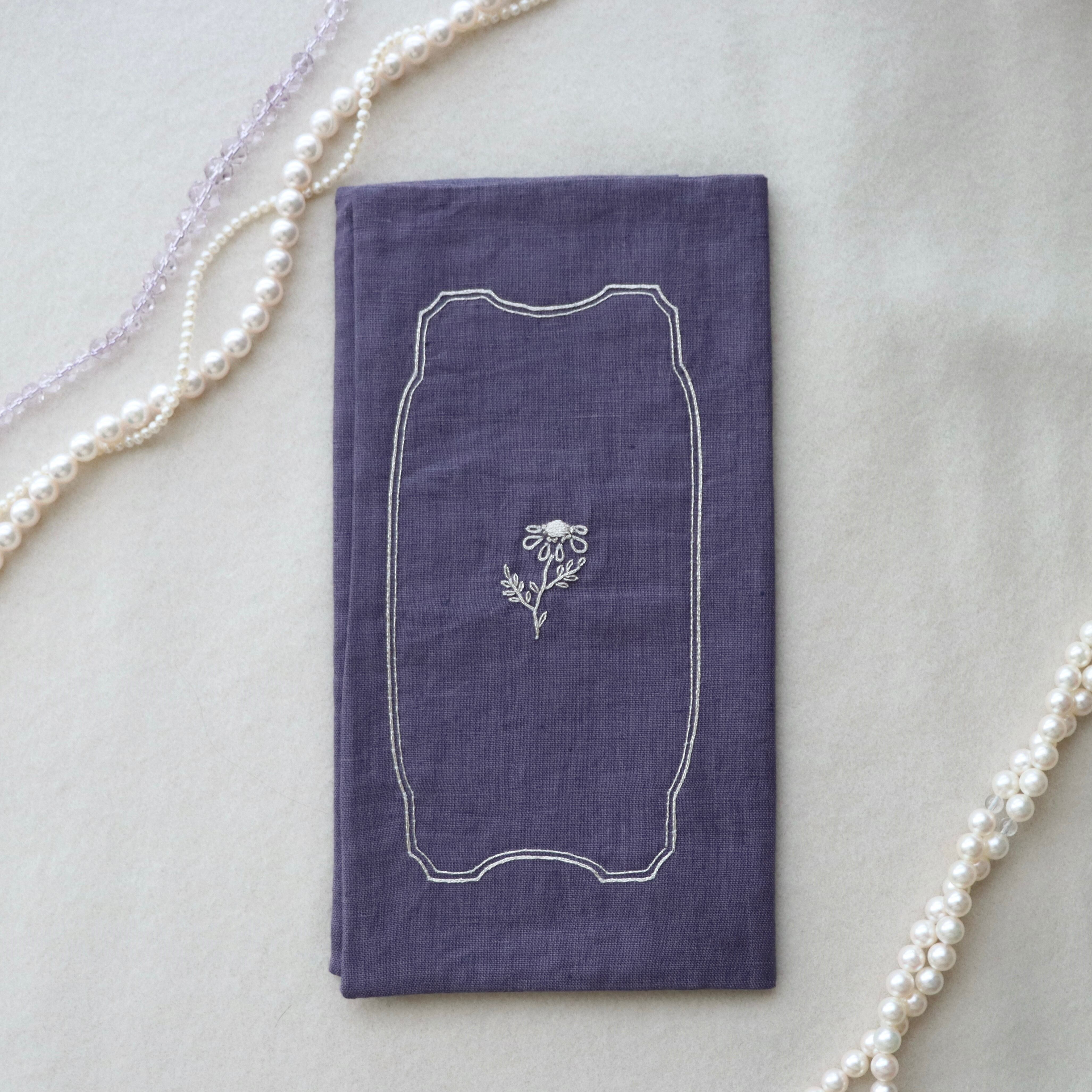 リネン生地に手刺繍を施したふくさです。