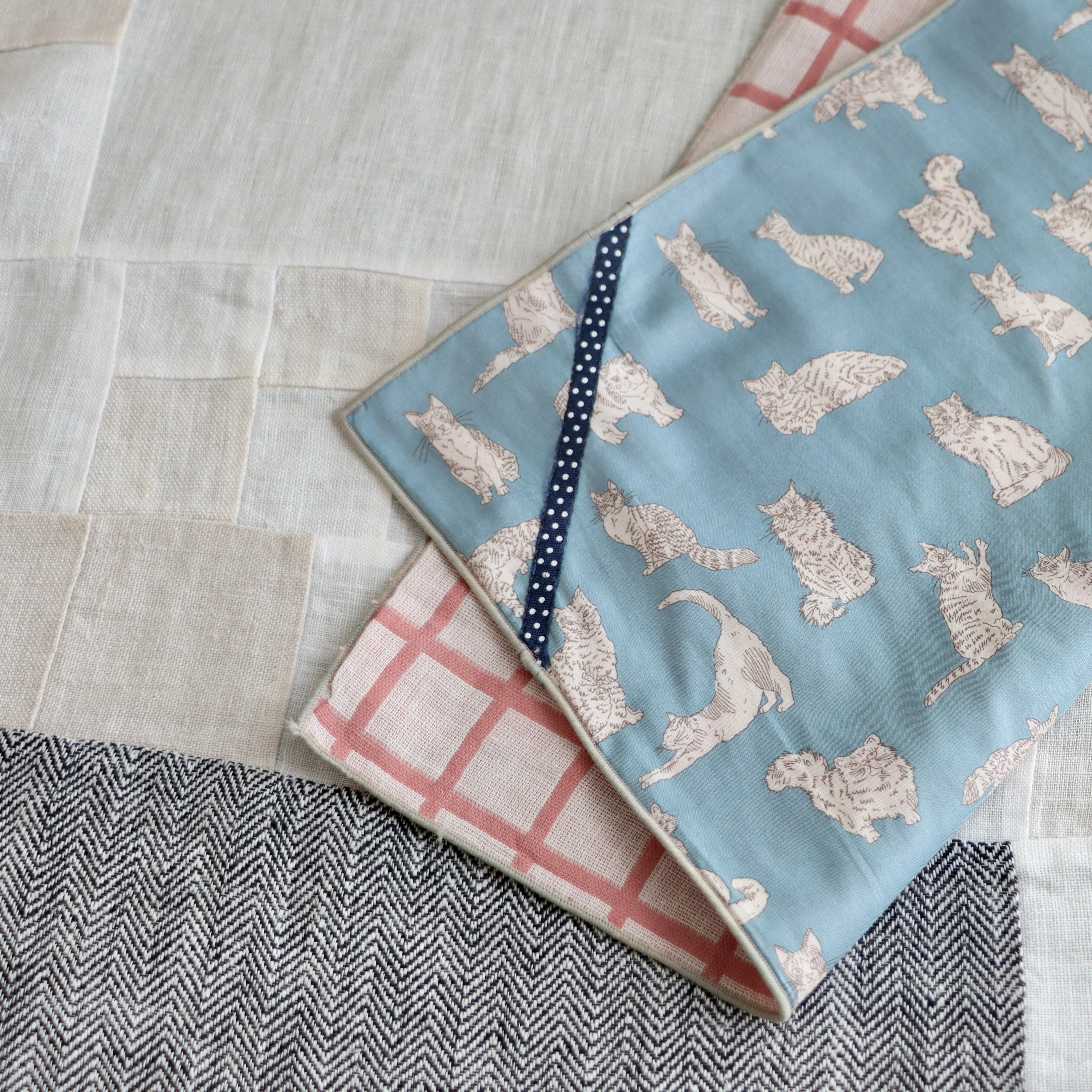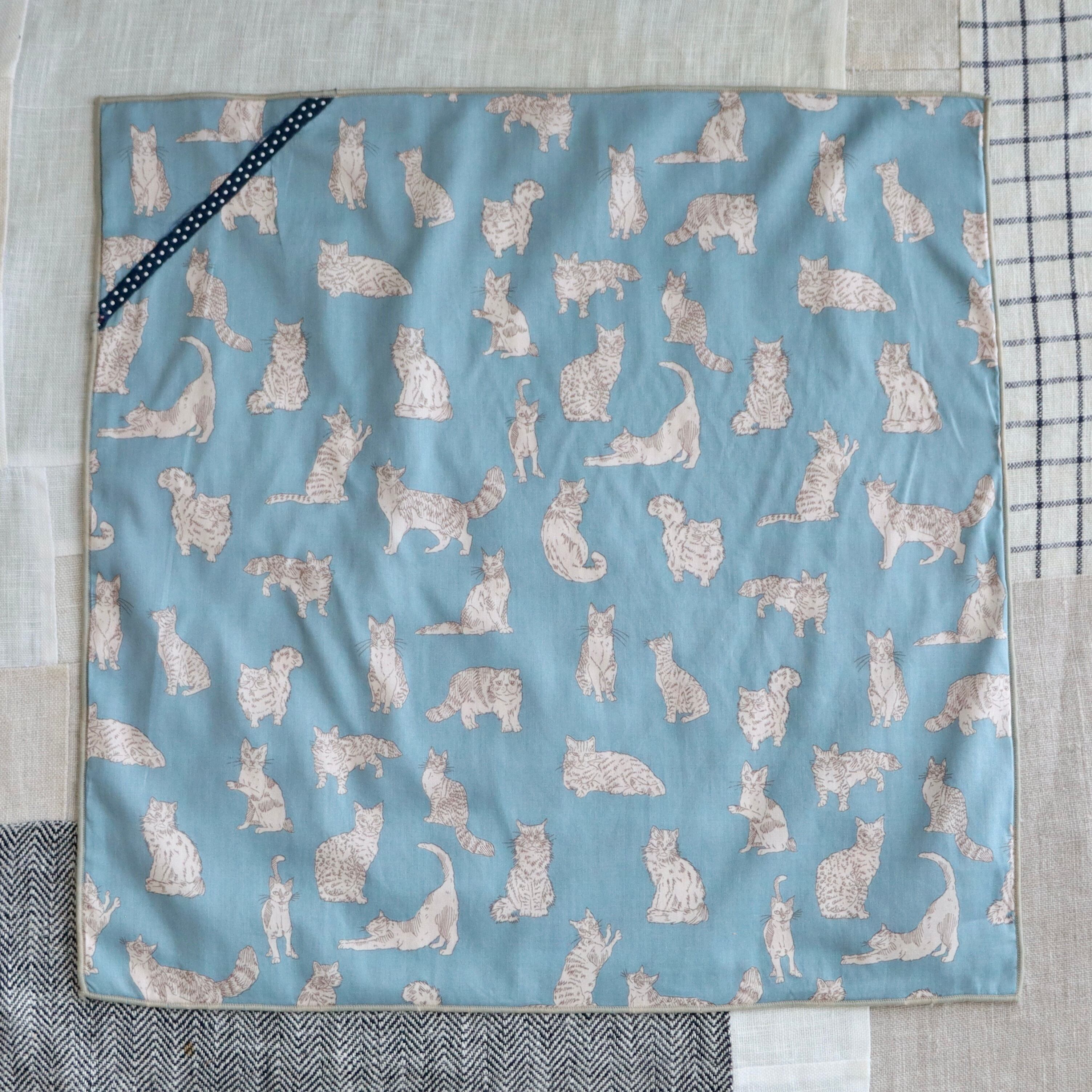 リバティの「ミャオウ(スモークライトブルー)」にアクセントでリボンをつけました。