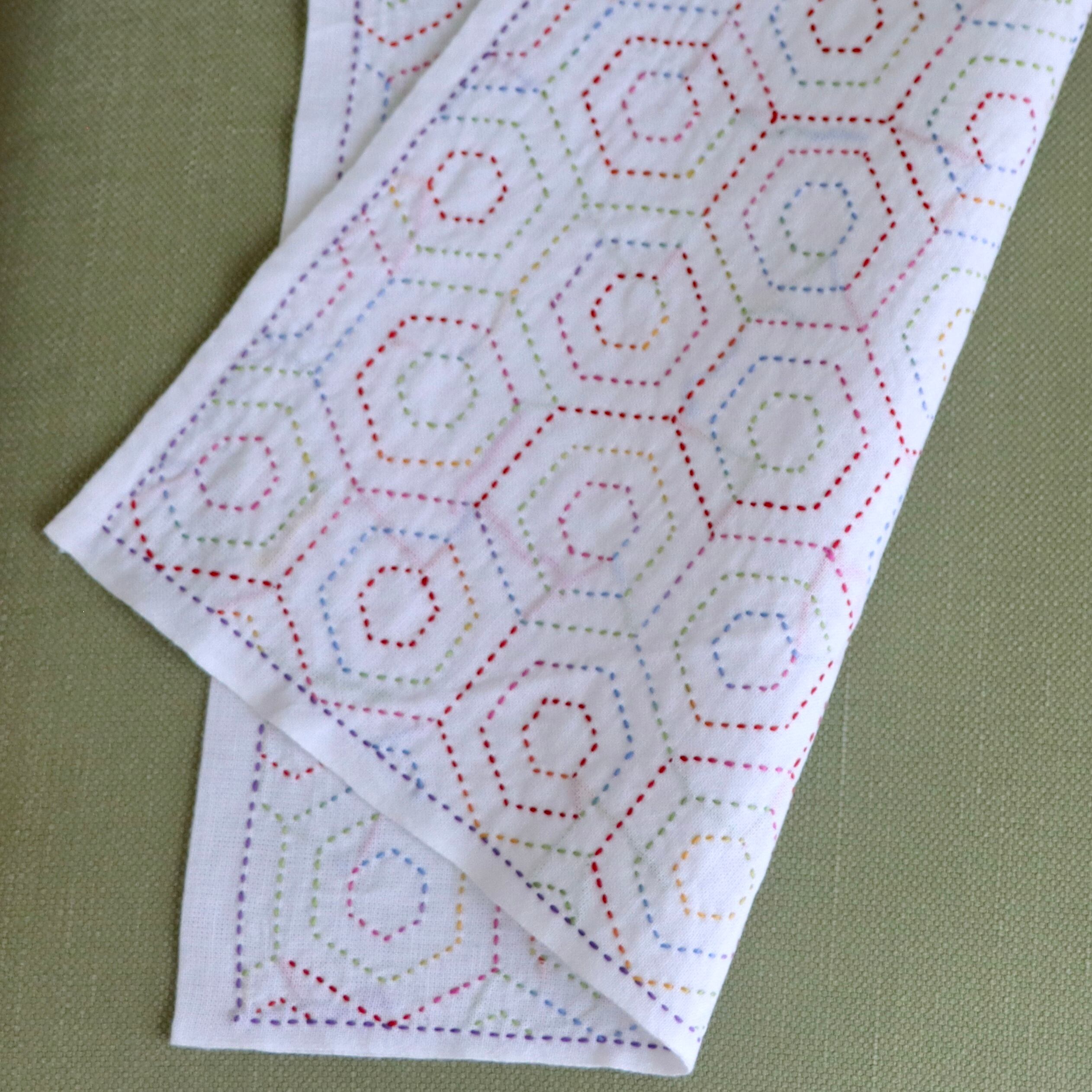 二重にしたさらしに刺し子をしました。