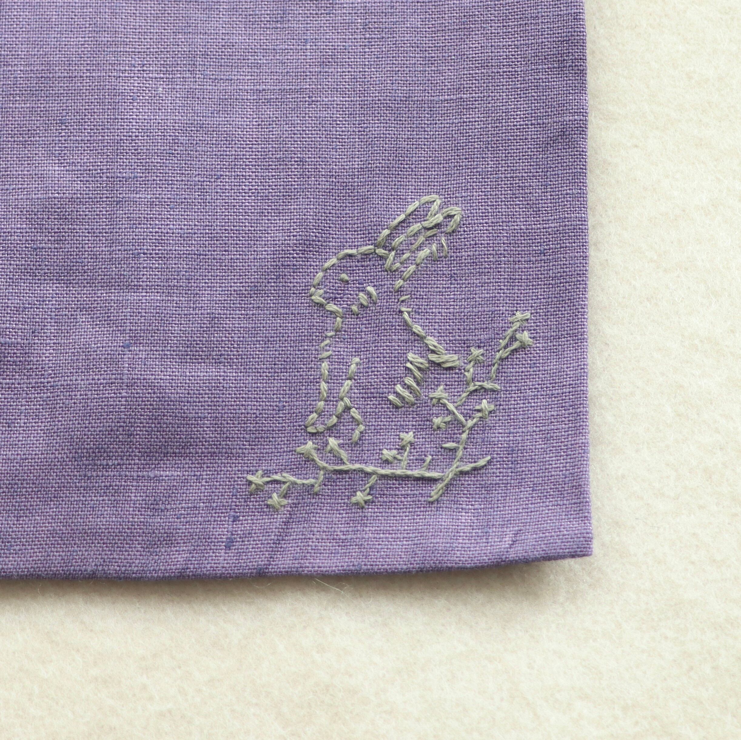 内側にリバティのタナローン「スリーピングローズ(グレー)」とうさぎの手刺繍が入っています。