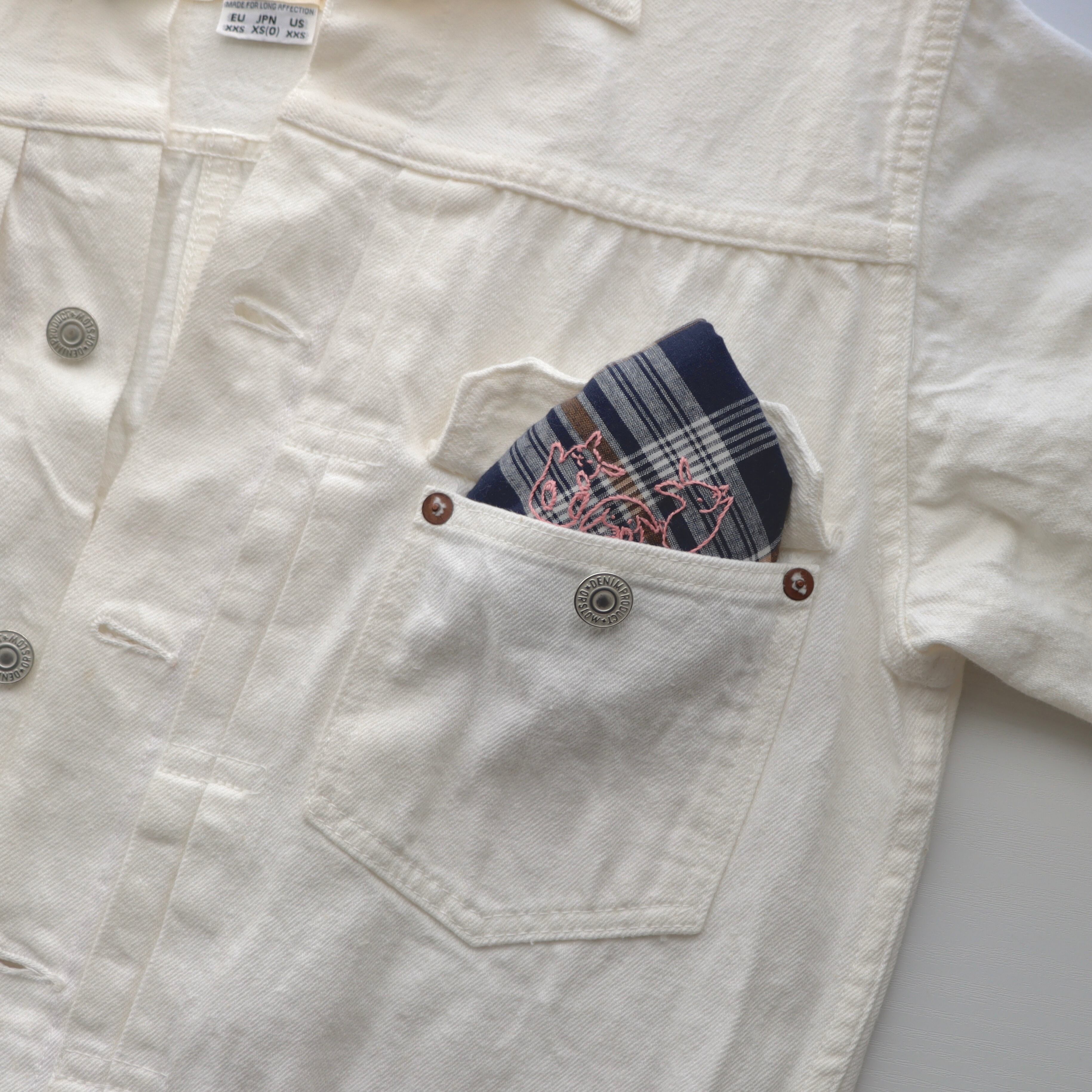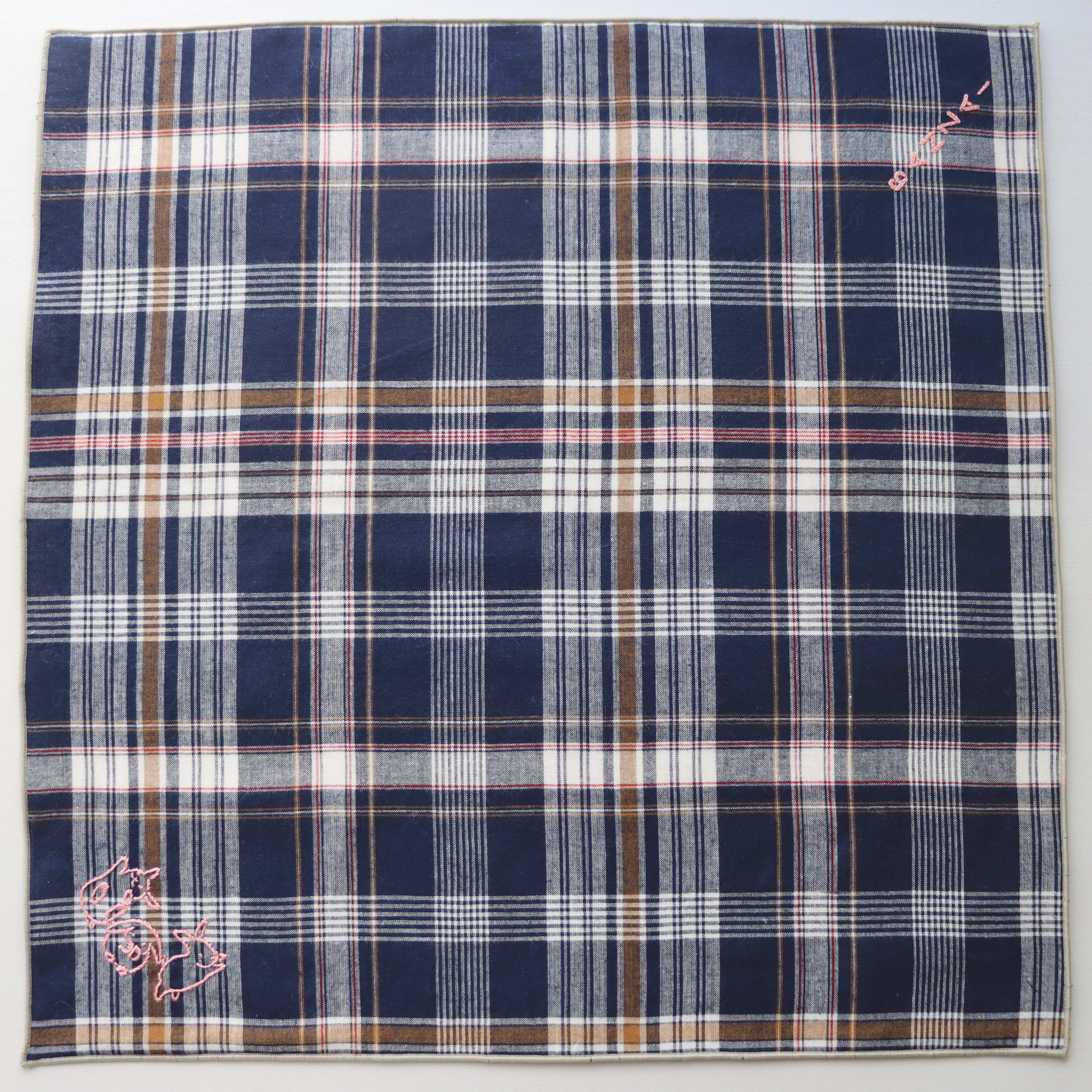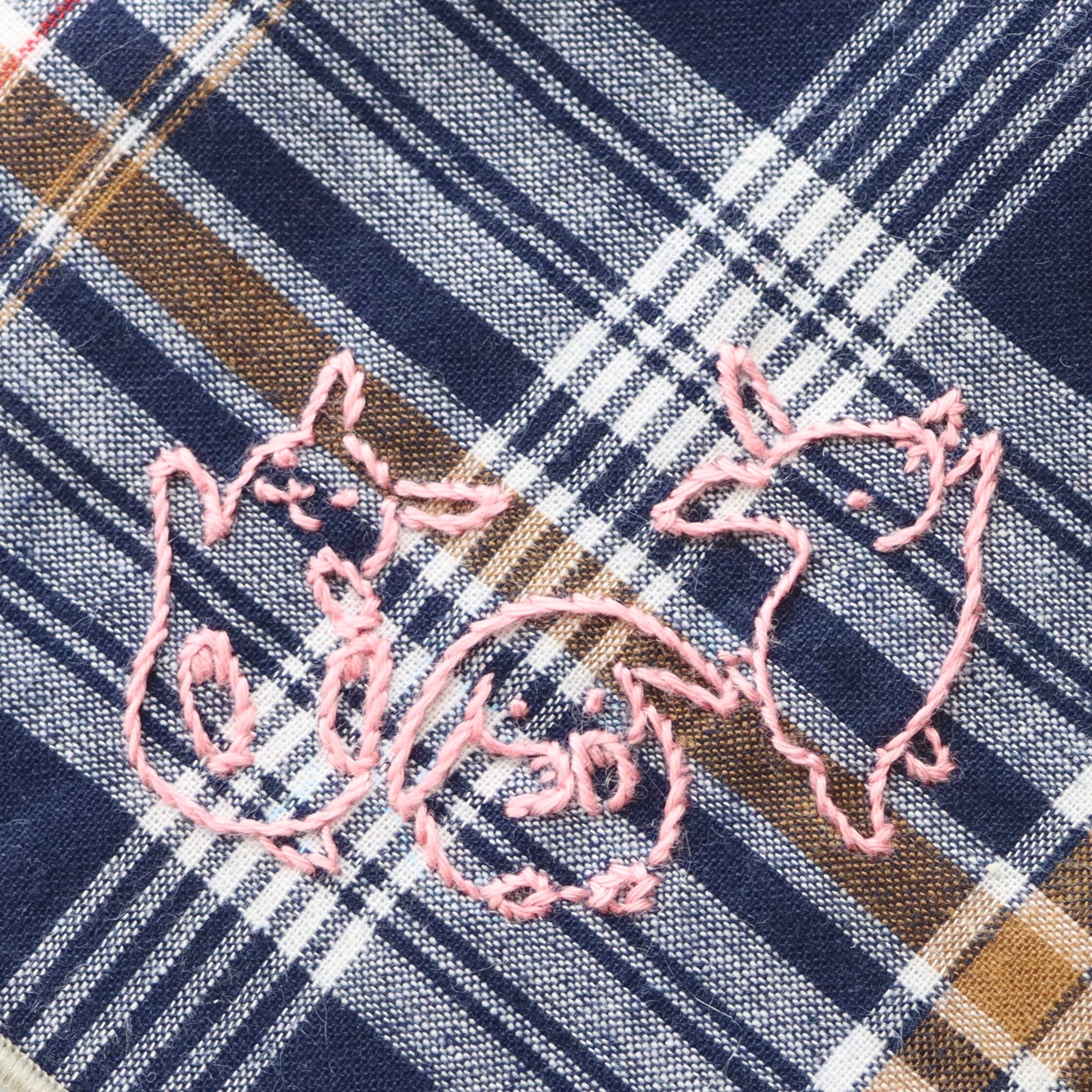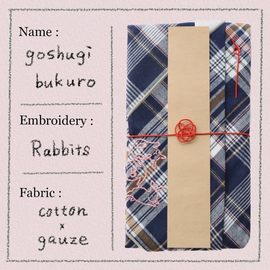 うさぎと文字の手刺繍が入っています。