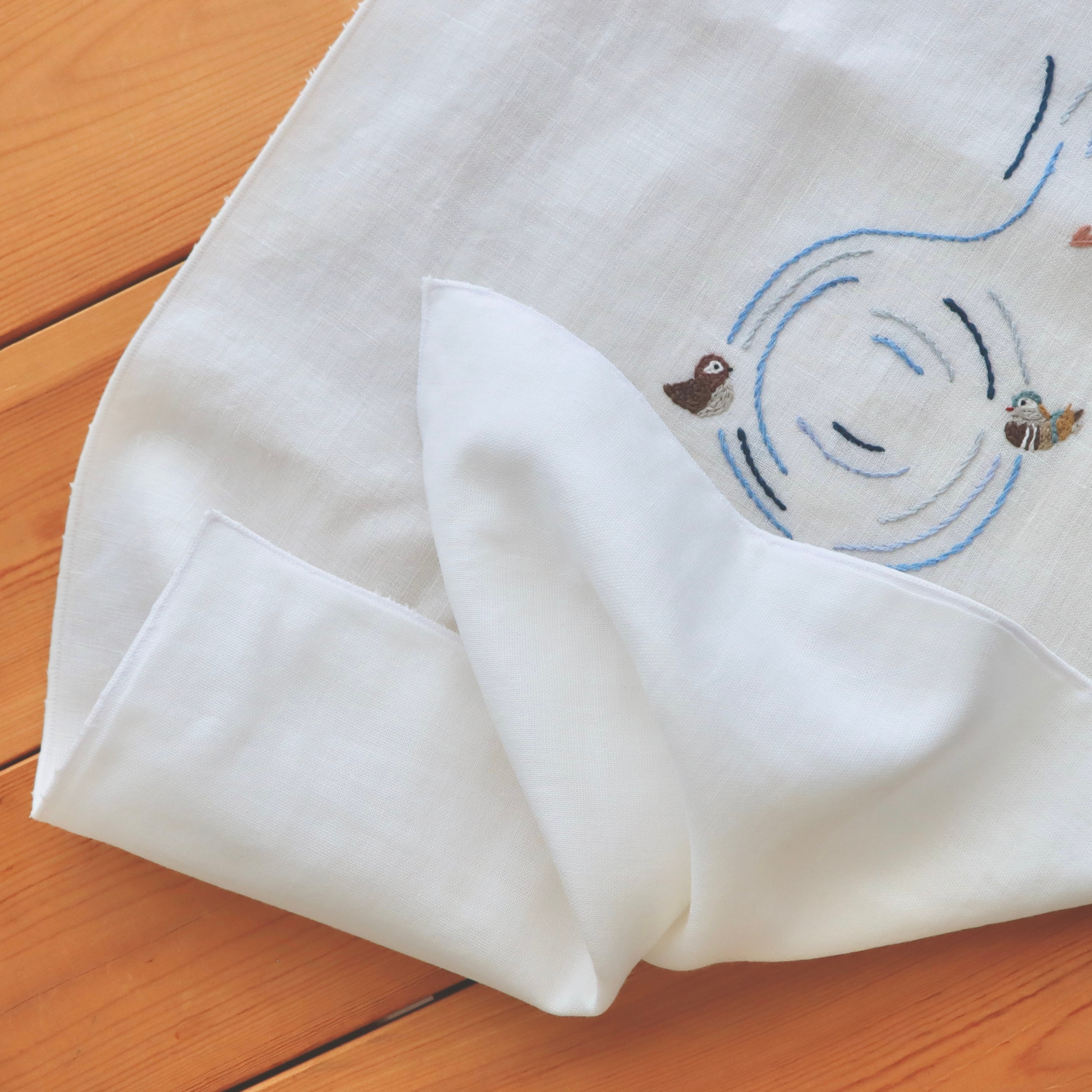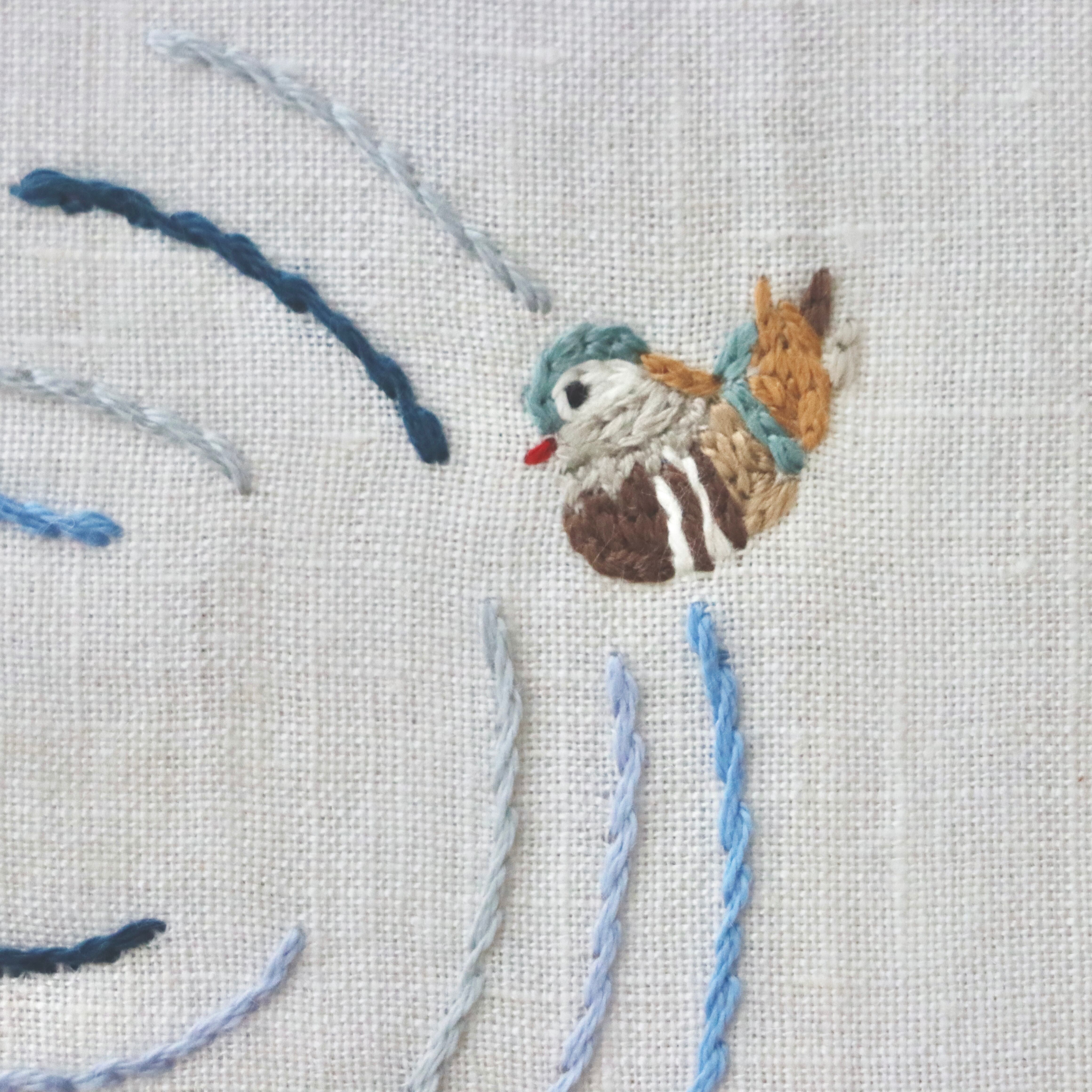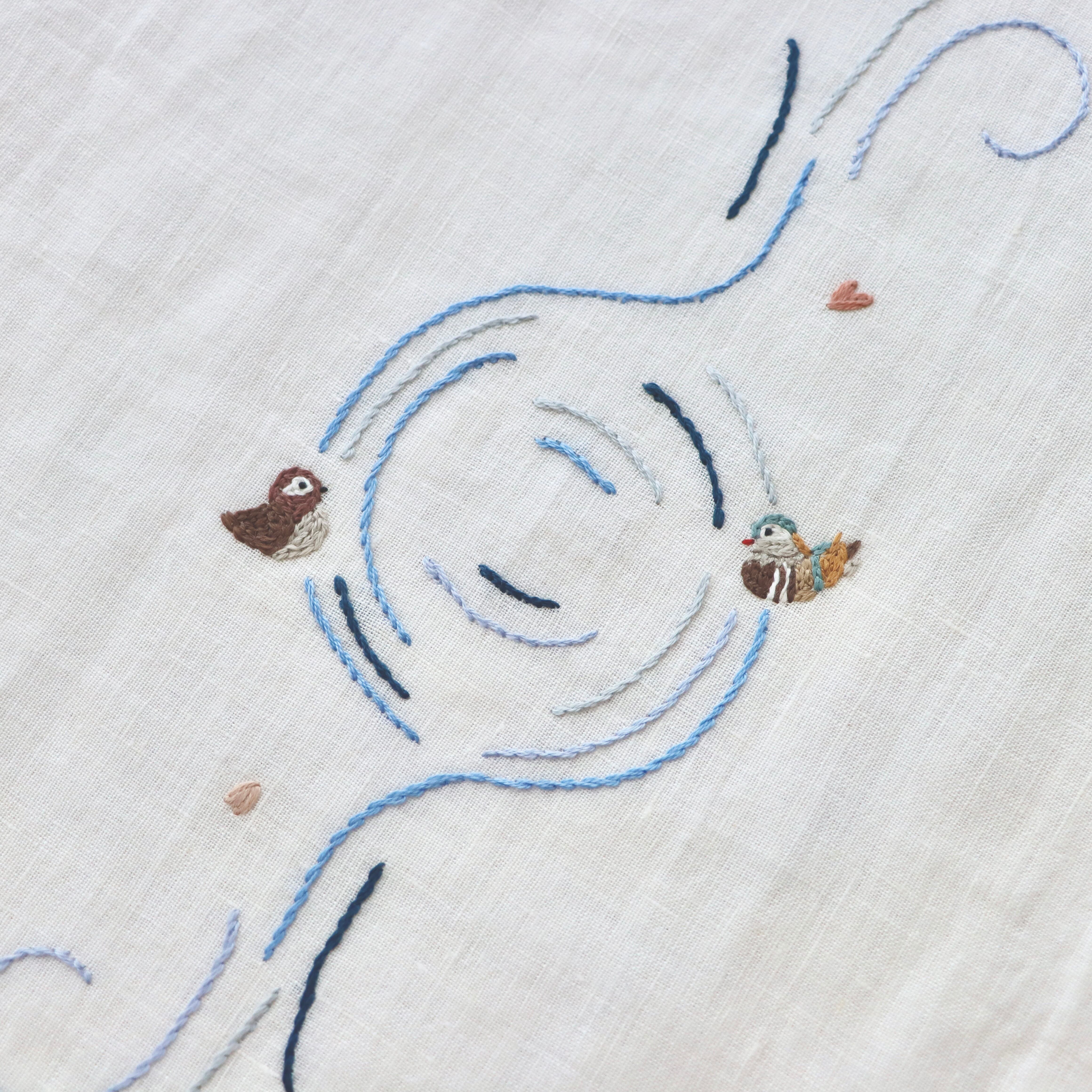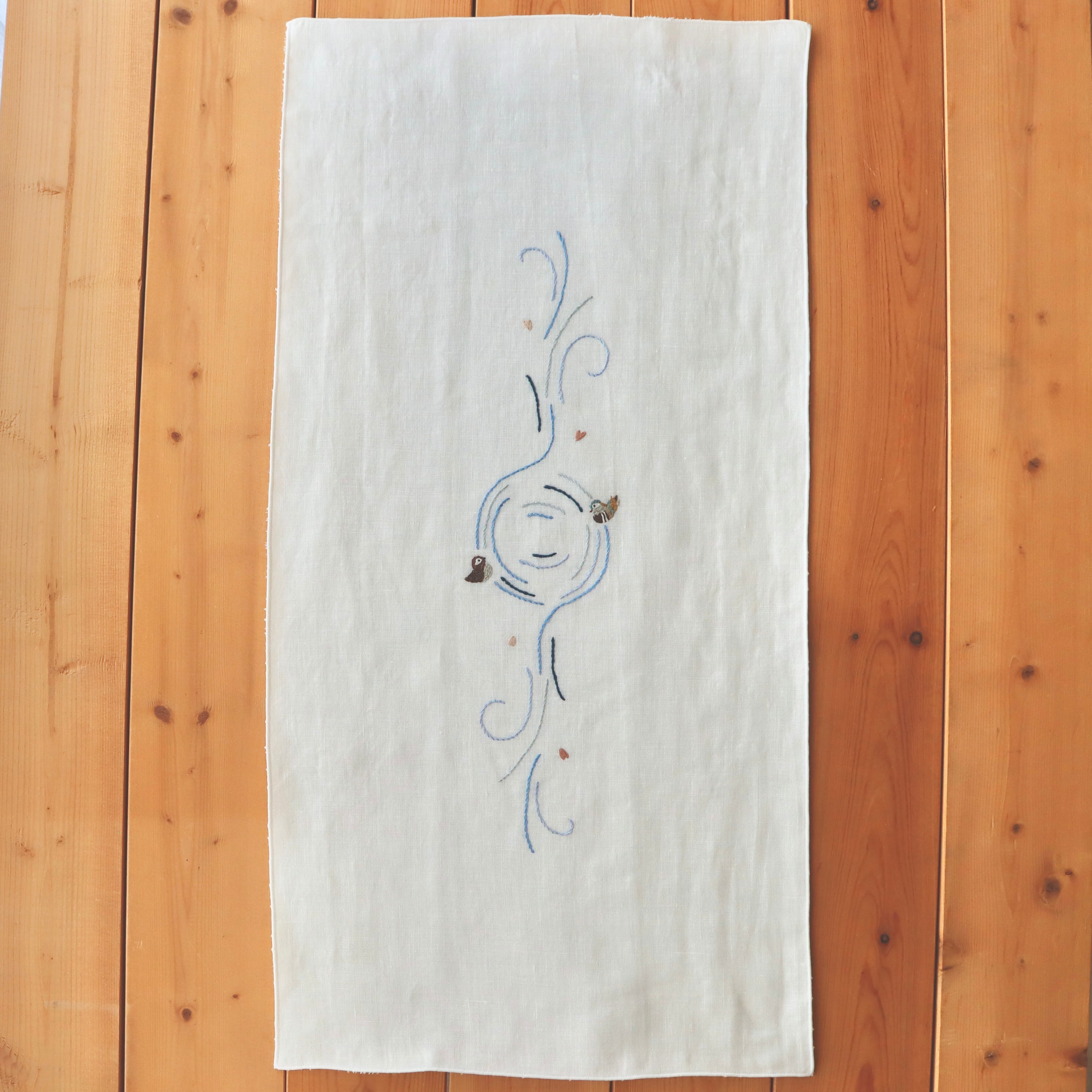 おしどりの手刺繍が入っています。
