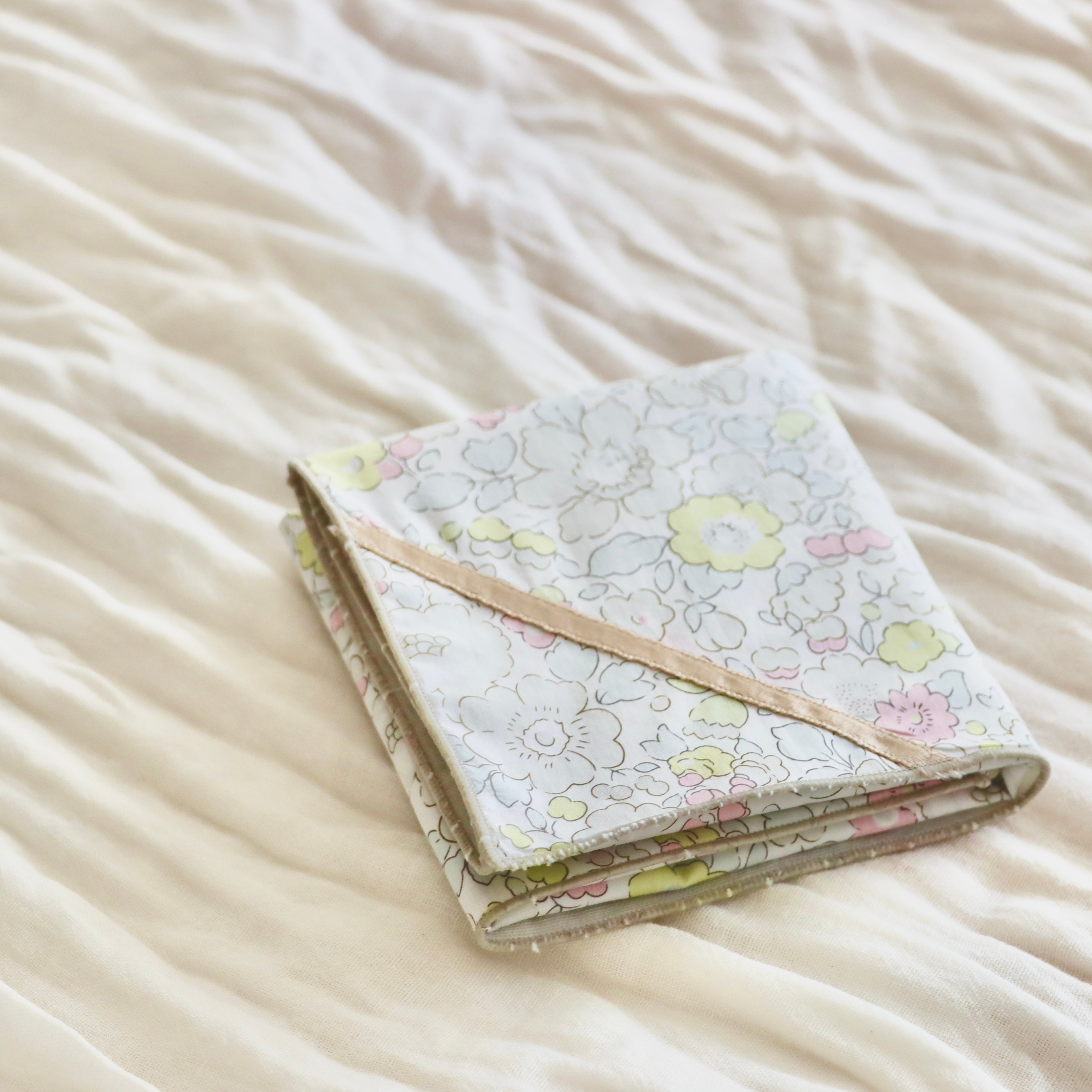 リバティの「ベッツィ(ライトグレージュ)」にアクセントでリボンをつけました。