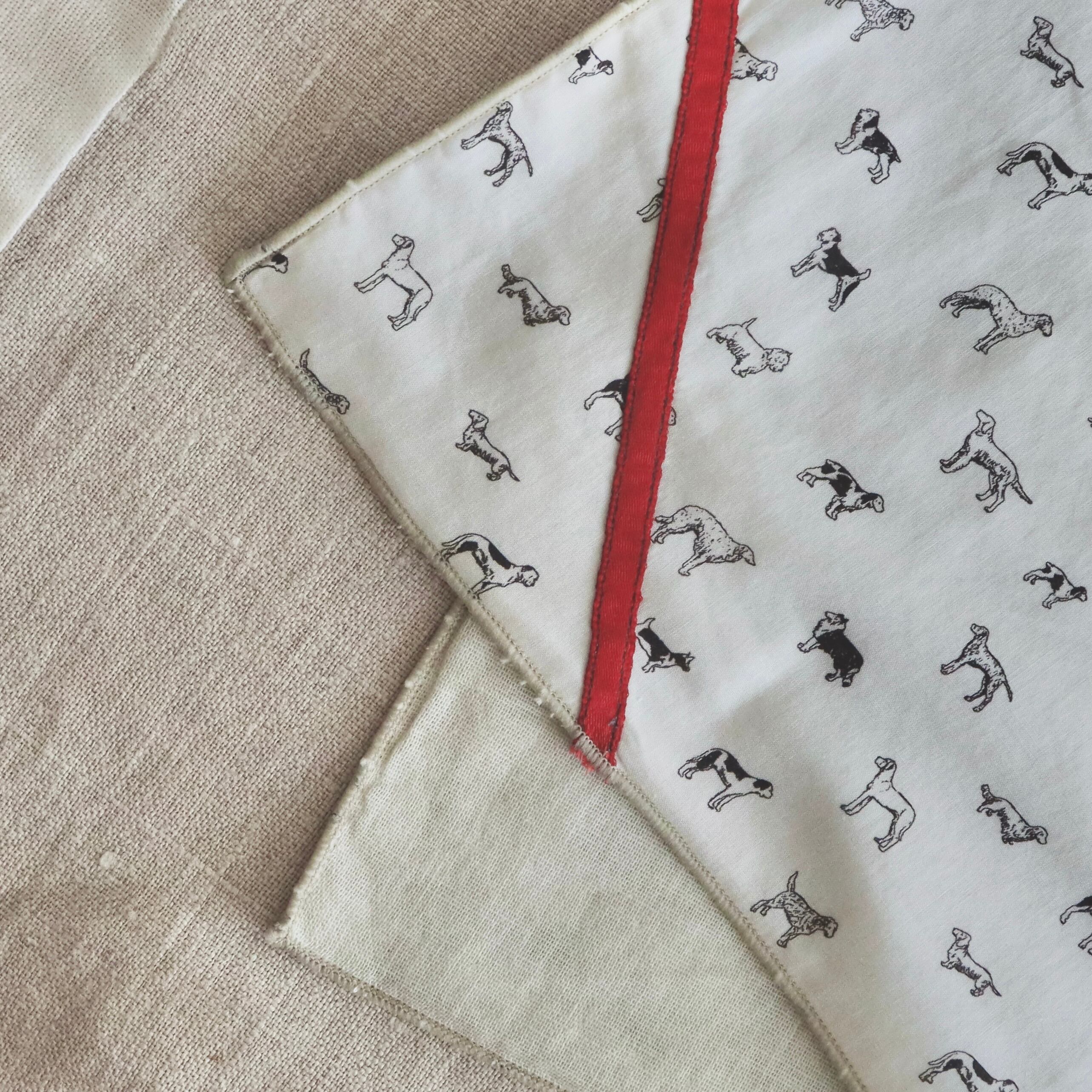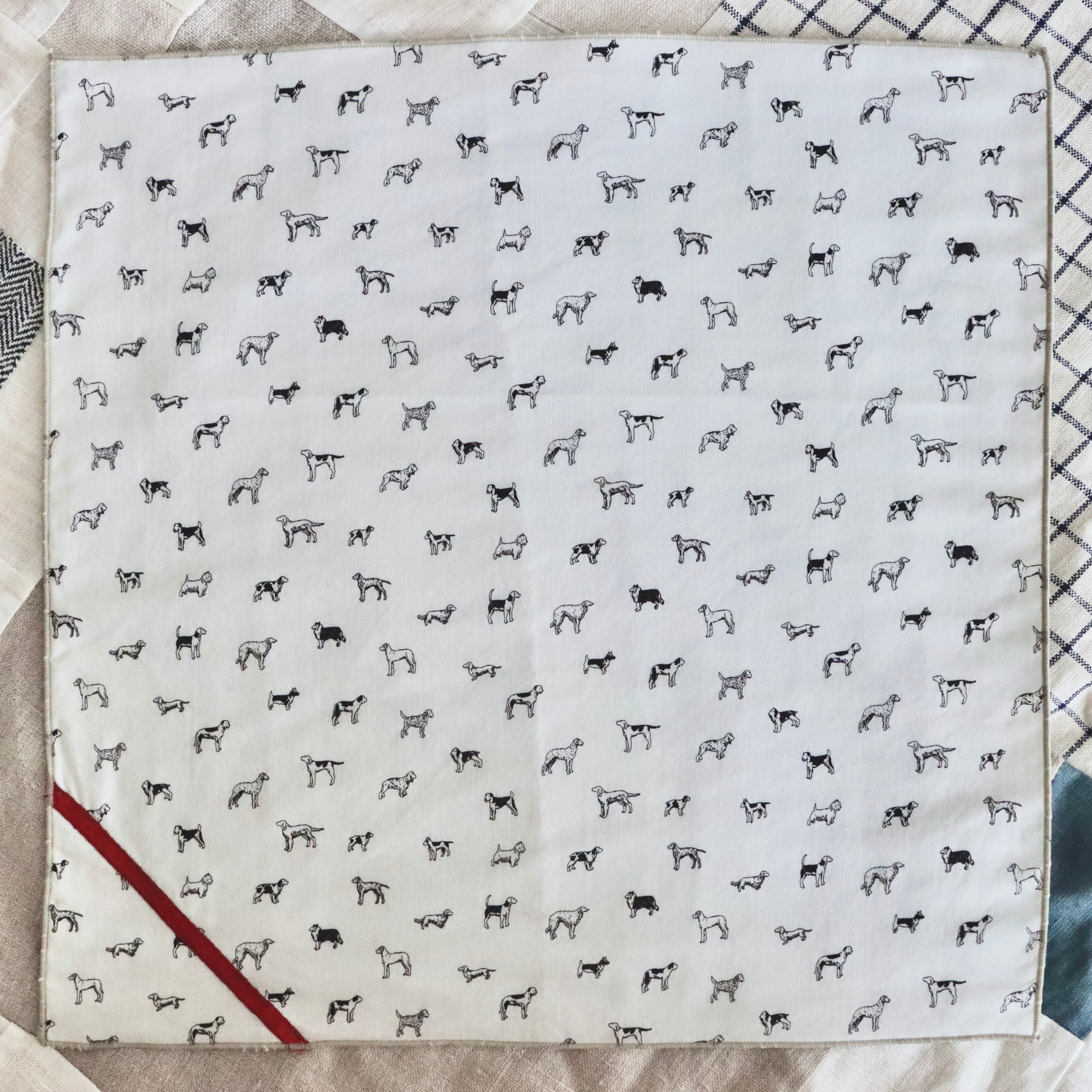 リバティの「マンズ・ベストフレンド(ホワイト)」にアクセントでリボンをつけました。