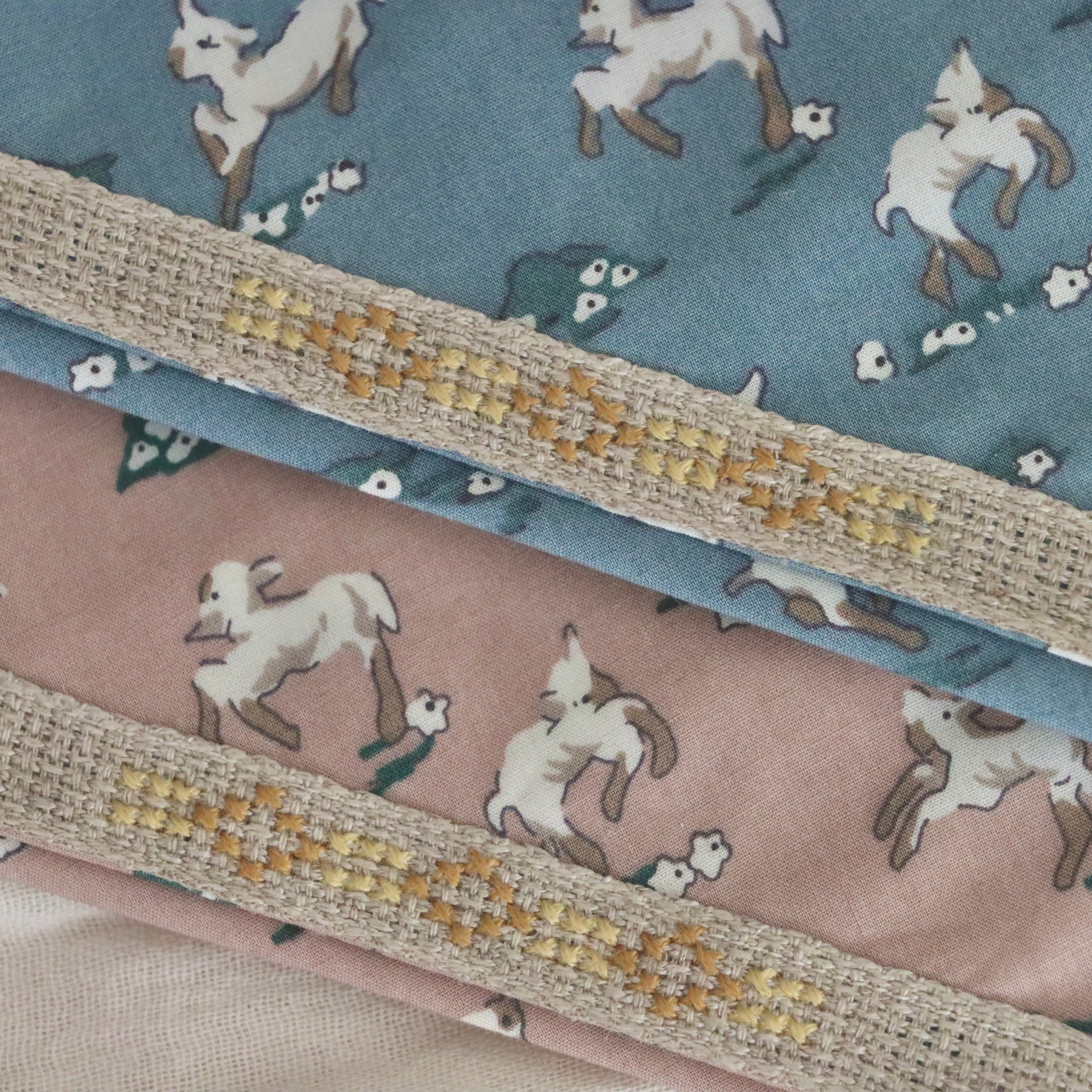 リバティの「ホイッスラー(ブルー)」にアクセントでリボンをつけました。