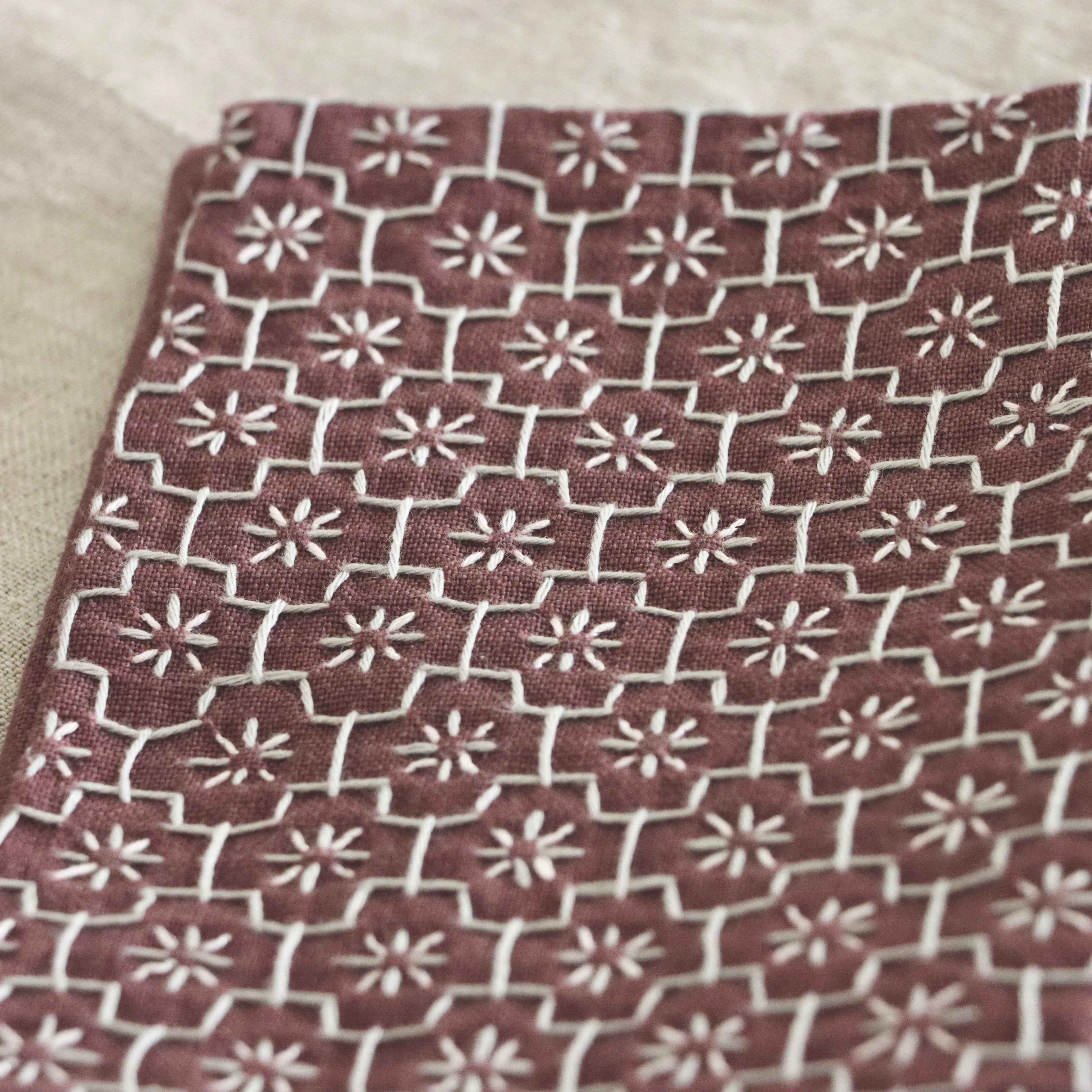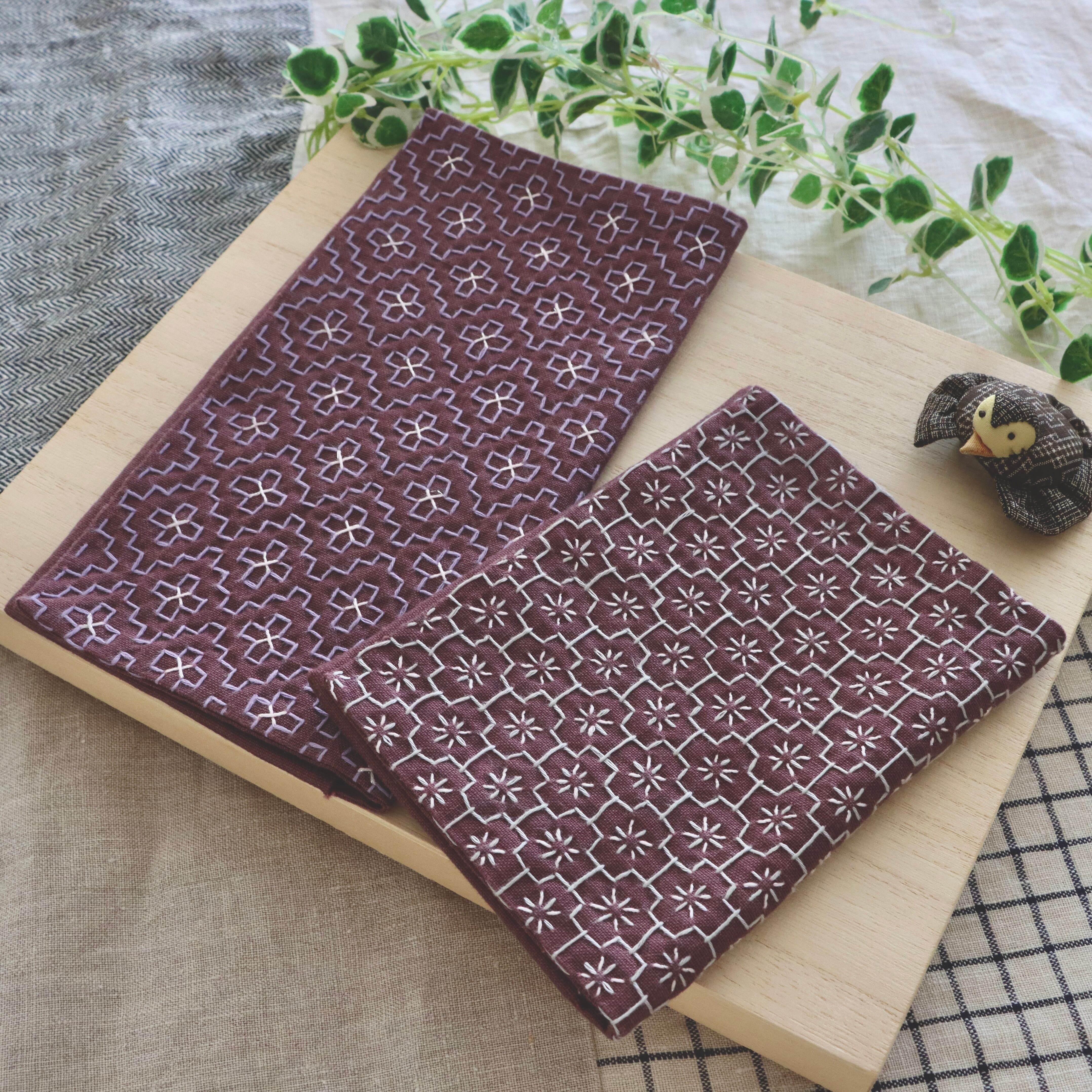 一目刺しの刺し子を施したポーチです。